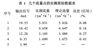 流量計廠家在出廠檢驗**中都把實測的幾個流量點的原始數(shù)據(jù)以表1方式給出,從中可見實測的引用誤差都遠遠小于*大允許誤差。表1的EMF量程為6m³/h(100L/min),輸出電流為4~20mA;且在滿量程值50%以上的測量點精度較,而在滿量程值1/3以下測量點精度低。