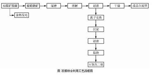 本項目為石煤綜合利用的項目。現(xiàn)有提釩工藝產(chǎn)生大量廢渣。其主要成分為二氧化硅,但其中夾帶有大量的釩資源,釩資源利用率低,同時,該廢渣中堿含量較高,如將廢渣隨意堆放,易造成環(huán)境污染。本項目*大特點在于利用現(xiàn)有提釩工藝中的提釩二次渣作為制備沉淀法白炭黑的主要原料,將廢渣中的硅資源得到充分利用。為企業(yè)創(chuàng)造了新的經(jīng)濟(jì)增長點,同時,解決了現(xiàn)有提釩生產(chǎn)中造成的釩資源浪費(fèi)和環(huán)境污染問題,此外,該項目利用現(xiàn)有提釩生產(chǎn)線脫碳工序中產(chǎn)生的余熱作為加熱熱源,取代了傳統(tǒng)工藝以煙煤為主要燃料的方法,即對生產(chǎn)中產(chǎn)生的余熱得到了有效合理的利用,又進(jìn)一步降低了產(chǎn)生的燃料成本,達(dá)到了節(jié)能減排,資源綜合利用的目的,工藝流程框圖如下。
