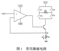 以往的激磁電路的設(shè)計(jì)都是采用恒流源和可控開關(guān)電路組成。恒流源是由電壓基準(zhǔn)、比較放大、控制調(diào)整和采樣等部分組成的直流負(fù)反饋?zhàn)詣?dòng)調(diào)節(jié)系統(tǒng),常用的激磁電路就是用串聯(lián)調(diào)整型恒流電源盒控制開關(guān)組成的,如圖1。其中Vref是參考電壓,Rs是采樣電阻,Is為流過Rs的電流,就是所需的恒流,RL為電磁流量傳感器線圈,K1、K2、K3、K4為可控開關(guān),以達(dá)到使線圈RL中流經(jīng)正負(fù)交換的電流,對(duì)傳感器激磁。