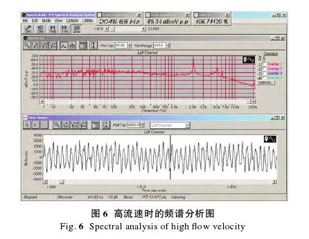 如圖 5 所示,漏波現(xiàn)象使流量偏小 44.3%。針對(duì)這一現(xiàn)象,采用頻譜分析+動(dòng)態(tài)濾波,改善信號(hào)波動(dòng),消除“漏波”現(xiàn)象。信號(hào)可以從時(shí)域分析,也可以從頻域分析。時(shí)域的信號(hào)圖像,是以時(shí)間軸為橫軸;頻域的信號(hào)圖像,是以頻率值作為橫軸。信號(hào)的時(shí)域分析主要側(cè)重于信號(hào)的直觀印象,例如信號(hào)的周期,信號(hào)在某一時(shí)間點(diǎn)的幅值等。信號(hào)的頻域分析,是采用傅里葉變換,將 X(t)變換成 X(f)。具體的變換方法在這里不再贅述。信號(hào)的頻譜圖表明了信號(hào)在不同頻率分量成分的大小,比時(shí)域圖像提供更具體更豐富的頻域圖像。在 Pico Scope 示波器中,可以利用其頻譜分析的功能來(lái)觀察信號(hào)的頻譜。信號(hào)的濾波處理通常是信號(hào)處理中常用的方法。信號(hào)的濾波主要是獲得自己想要的信號(hào),并且過(guò)濾掉不符合實(shí)驗(yàn)要求的信號(hào)。通常有低通、高通、帶通、帶阻這幾種方式。實(shí)際應(yīng)用中,通常是設(shè)計(jì)濾波電路對(duì)電路進(jìn)行濾波。在測(cè)試測(cè)量中,往往需要的是濾掉信號(hào)中的雜波。盡可能排除影響因素,通過(guò)對(duì)數(shù)顯壓縮空氣流量計(jì)傳感器原始信號(hào)直接進(jìn)行實(shí)時(shí)頻譜分析,得出超高流速時(shí)的流量值。