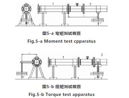 對(duì)于高壓機(jī)油流量計(jì)來說,還應(yīng)當(dāng)詳細(xì)說明流量計(jì)所需求的彎曲與扭力力矩的保護(hù)水平。此數(shù)據(jù)是通過試驗(yàn)直接獲得,彎矩測(cè)試裝置如圖5-a 所示,直管段1 連接氣體流量標(biāo)準(zhǔn)裝置,在直管段2 預(yù)先確定的力臂L 位置附加垂直方向的力F 而形成彎矩M;扭矩測(cè)試裝置如圖5-b 所示,直管段1 連接氣體流量標(biāo)準(zhǔn)裝置,在直管段2 側(cè)面預(yù)先確定的力臂L 位置附加垂直方向的力F 而形成扭矩T。而彎矩與扭矩均是作用于流量計(jì)入口與出口法蘭處。由于此項(xiàng)測(cè)試主要針對(duì)流量計(jì)強(qiáng)度的校核,為了更有說服力、提高可靠性,故將鋁合金殼體的中低壓渦輪流量計(jì)DN80-G100用于此次測(cè)試。而整個(gè)測(cè)試過程是將砝碼F 按EN12261 表10 中要求1 倍、2 倍直至做到4 倍(即力矩為3 040 N·m),未發(fā)現(xiàn)流量計(jì)殼體有任何異常變化。而測(cè)試結(jié)果表明在施加砝碼F 之前、過后得到的指示誤差與施加砝碼F 之前的指示誤差未有明顯變化。