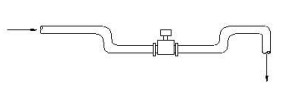 4.當(dāng)向下管道長度超過5m時,在傳感器后安裝一個虹吸管或一個放氣閥。以避免低壓而可能造成的對測量管襯里的破壞。保證滿管,減少含氣量。