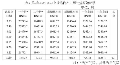 (1)綜上數(shù)據(jù),圖表可看出煙氣流量計測量飽和蒸汽,流量數(shù)據(jù)顯示清晰,穩(wěn)定可靠,其產(chǎn)、用氣量隨著流量計的完善,其差值變小了,也即使用部門越多,其消耗越少。