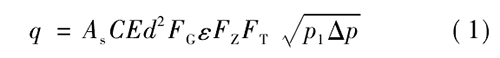 式中,、為標(biāo)準(zhǔn)狀態(tài)下天然氣體積流量,m; /s; A,為秒計(jì)量系數(shù),視采用計(jì)量單位而定,此處A=311 794 x 10 -6; C為流出系數(shù);E為漸近速度系數(shù);d為孔板直徑,mm; F}為相對密度系數(shù);。為可膨脹系數(shù);F:為超壓縮因子;F:為流動溫度系數(shù);P,為孔板上游側(cè)取壓孔氣流絕對靜壓,Pa;0P為氣流流經(jīng)孔板時(shí)產(chǎn)生的壓差,Pao
