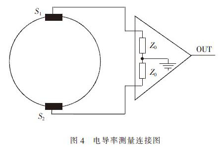 由井水流量計(jì)(兩電極)傳感器與信號(hào)放大器組成如圖4 所示
