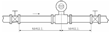 膠水管道流量表的安裝質(zhì)量對其測量結(jié)果的影響較大,因此在安裝時需要注意幾個問題。*先,膠水管道流量表直管段的選擇在配管時一定要按照要求進(jìn)行選擇,一般選擇流量計(jì)通徑與工藝管道通徑相同,即可滿足工程需要,而且安裝方便、壓力損失小,流量計(jì)直管段上游側(cè)的長度不少于5倍工藝管道直徑,下游側(cè)的長度不少于3倍工藝管道直徑(圖2)。但在流速太慢而又要求精度較高或需要變徑的應(yīng)用場合,可選擇通徑小于工藝管道通徑的流量計(jì),以提高測量精度,此時流量計(jì)上、下游必須加裝異徑管,且進(jìn)口異徑管上游側(cè)應(yīng)有長于10倍工藝管道直徑的直管段,下游側(cè)應(yīng)有長于5倍工藝管道直徑的直管段(圖3)。