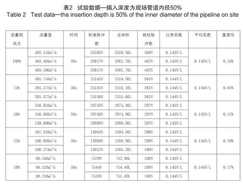 插入式煙氣流量計(jì)插入深度為現(xiàn)場管道內(nèi)徑的50%時(shí),試驗(yàn)數(shù)據(jù)如下(以 DN200 為例):