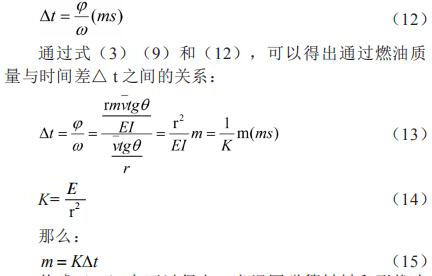 從式(15)中可以得出,當(dāng)渦圈彈簧材料和形狀確定和渦輪外形尺寸確定的情況下,時(shí)間差△ t 與通過的燃油質(zhì)量 m 成正比例關(guān)系,則測(cè)量起始脈沖信號(hào)與終止脈沖信號(hào)的時(shí)間差△ t,即可得出通過流量計(jì)的燃油質(zhì)量 m。