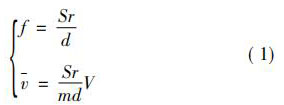 式中: 珋v 為旋渦發(fā)生體兩側平均流速,m / s; d 為旋渦發(fā)生體特征寬度,m; Sr 為斯特勞哈爾常數(shù),無量綱常數(shù); V 為管道流體平均流速,m / s; m 為旋渦發(fā)生體兩側弓形面積與管道截面積之比。 如,對于寬度為 d 的三角柱,有: