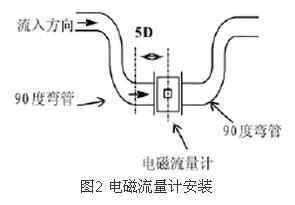 (2)直管段保證在前5D后3D為獲得儀表測量精確度,在傳感器上游側(cè)的直管段長度不小于5D,下游側(cè)不小于3D(D為傳感器的名義直徑)。若在傳感器上游側(cè)有兩個以上的彎頭或其它阻流件,則前置直管段應大于10D。