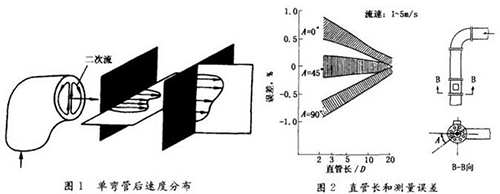 高溫電磁流量計(jì)流體流過(guò)彎管后,下游產(chǎn)生流速分布畸變,若是兩只鄰近相接的不同平面彎管,除流速分布畸變外還會(huì)有漩渦。這些現(xiàn)象要影響裝在下游的大部分類(lèi)型流量?jī)x表(除容積式等少數(shù)類(lèi)型外)的測(cè)量值,因此通常要求在流量?jī)x表安裝點(diǎn)之前有一定長(zhǎng)度直管段,改善進(jìn)入儀表的流動(dòng)狀況。高溫電磁流量計(jì)受彎管影響較小,直管長(zhǎng)度要求也遠(yuǎn)低于節(jié)流差壓式、渦街式等其他流量?jī)x表。但是當(dāng)前高溫電磁流量計(jì)精度為測(cè)量值的0.5%,甚至0.2%~0.4,即使影響量較小,還是受到人們的關(guān)注。