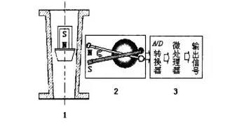 從以上原理分析可知,浮子的高度檢測(cè)是通過機(jī)電轉(zhuǎn)換單元精確測(cè)量懸浮在錐形管中的位置,通常通過磁鋼耦合,帶動(dòng)機(jī)械擺桿轉(zhuǎn)動(dòng),使角位移傳感器角度發(fā)生變化,輸出電信號(hào),通過對(duì)信號(hào)進(jìn)行處理,進(jìn)而換算處實(shí)際流量。浮子位置隨流量變化頻繁運(yùn)動(dòng),可見該機(jī)電轉(zhuǎn)換單元必須非接觸式的,機(jī)械磨損小,工作可靠穩(wěn)定,溫度特性好,線性度較高的才能保證輸出的精度。所以傳感器性能的提高意味著金屬管浮子流量計(jì)精度的提高。工況條件放寬,使浮子流量計(jì)能在更廣泛的工作環(huán)境中得到應(yīng)用。所以本文將對(duì)如何提高角度位移測(cè)量精度和環(huán)境適應(yīng)性進(jìn)行研究,如何提高測(cè)量的精度?