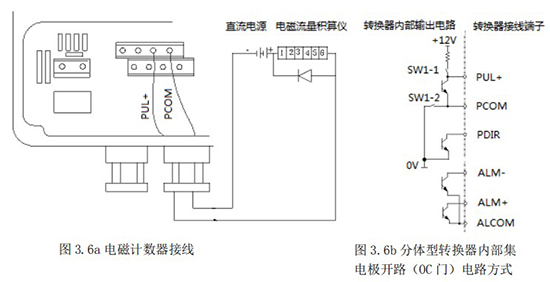 1.4.5 頻率(脈沖)、上下限報警、流向標(biāo)示等輸出均為集電極開路的電平輸出信號。