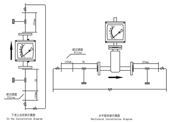4.若介質(zhì)中含有固體雜質(zhì),應(yīng)在閥門和直管段間加裝過濾器;若介質(zhì)中含有鐵磁物質(zhì),應(yīng)在指針浮子流量計的上游安裝磁過濾器。