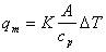消耗功率p和溫度差δt如式3所示比列關系,式中b, c, k均為常數(shù),k在?~?之間。從式2便可算出質量流速,乘上點流速于管道平均流速間系數(shù)和流通面積的質量流量qm,再將式3變換成式4。