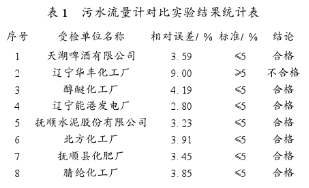 撫順市環(huán)保局在重點(diǎn)污染源單位中安裝了44臺化工污水流量計(jì)選型。其中,運(yùn)轉(zhuǎn)的有39臺,運(yùn)行比較正常的有14臺,通過對其中8臺所做對比實(shí)驗(yàn)結(jié)果表明合格的有7臺,合格率為87.5%。